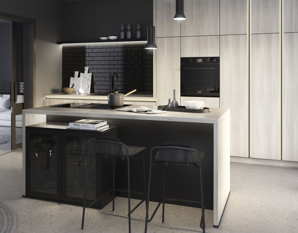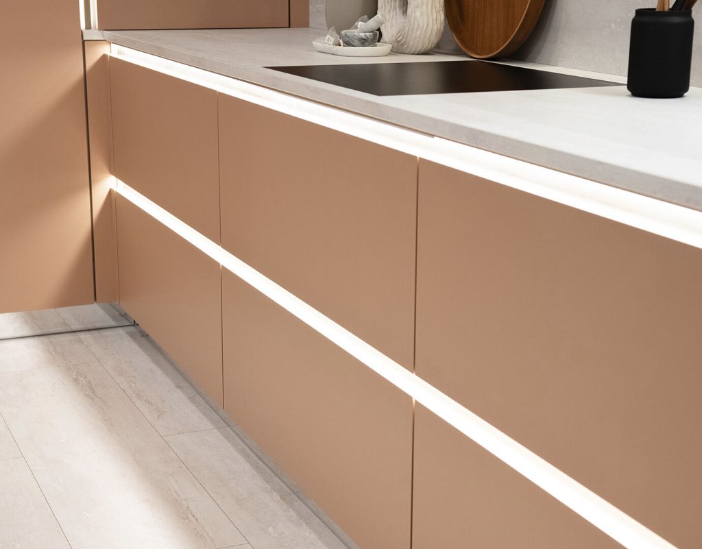 Grifflose Fronten, geteilte Fronten mit oder ohne LED Leiste